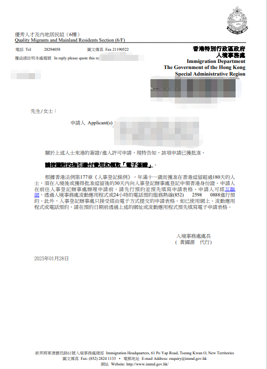 恭喜W先生成功获批香港专才计划