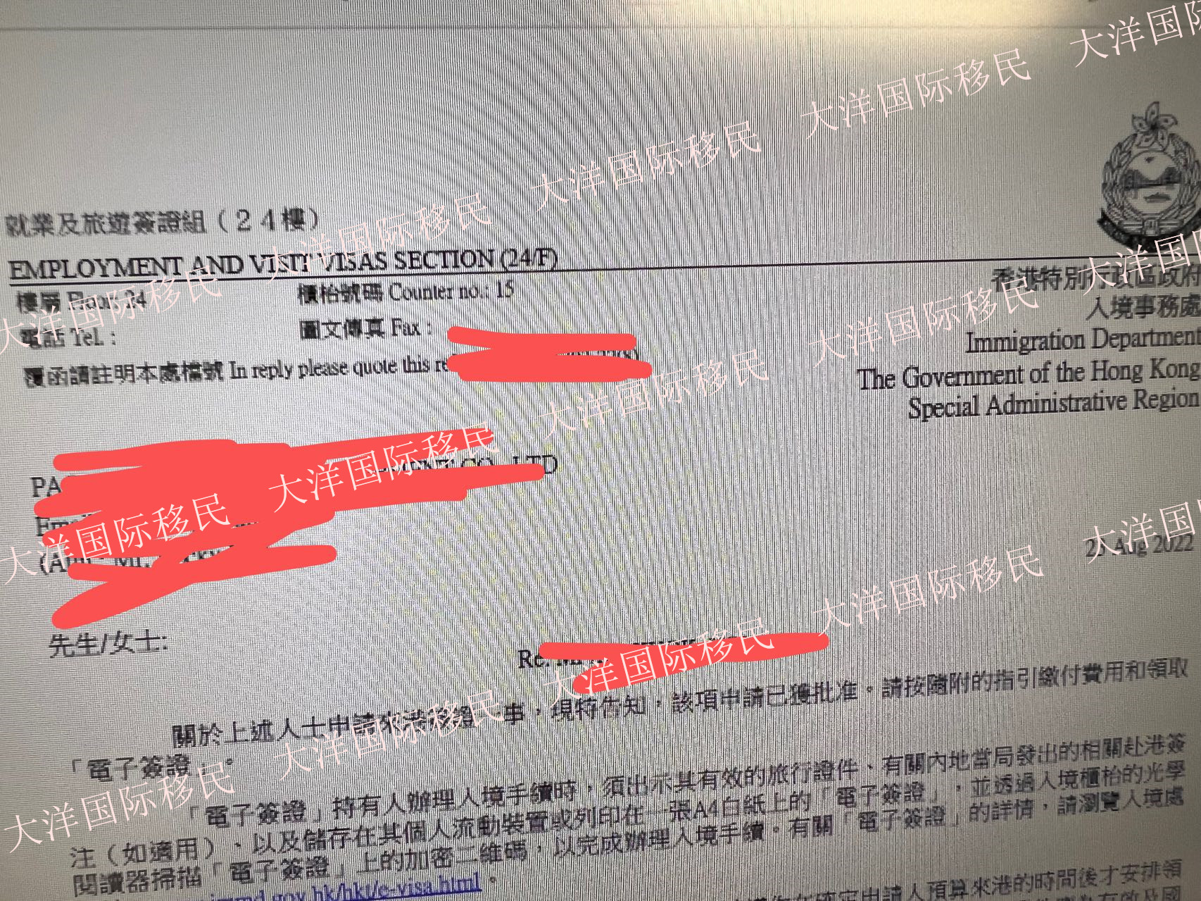 恭喜M先生获批香港专才移民,喜获香港身份!由大洋国际移民www.dayangyimin.com首发,转载请注明出处。