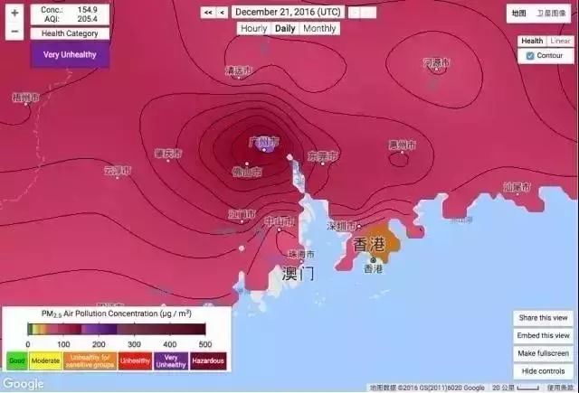 华南的广州pm2.5 ADI指数达到200,比上海还高!