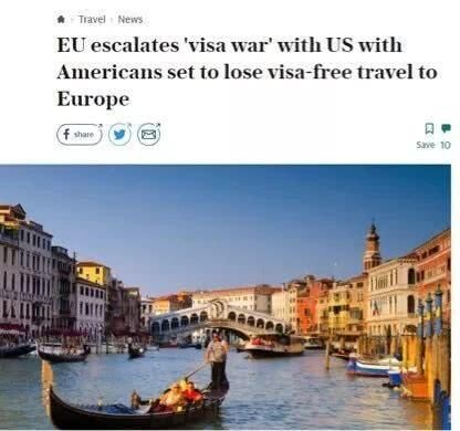这意味着,美国公民将不再享有免签进入欧盟国家的待遇,而根据现有规定,美国公民前往欧盟可享受免签停留90天的待遇。
