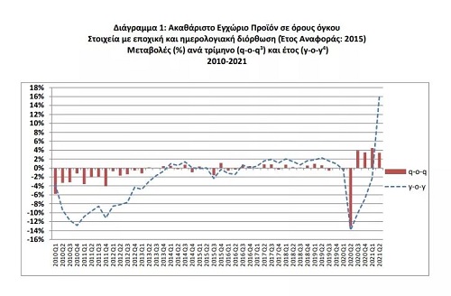 希腊国家银行经济学家尼克斯·马吉纳斯(Nikos Magginas)说:“希腊经济第二季度的表现超出了预期,我们此前预计的第二季度的年增长率为13.0%。”