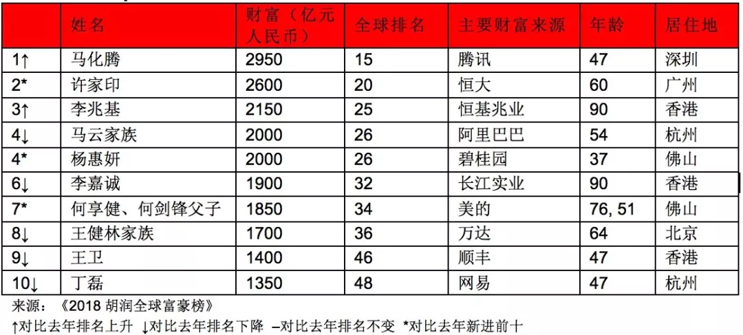 马化腾以2950亿元正式成为全球华人首富,其次是许家印,李嘉诚降至第六位